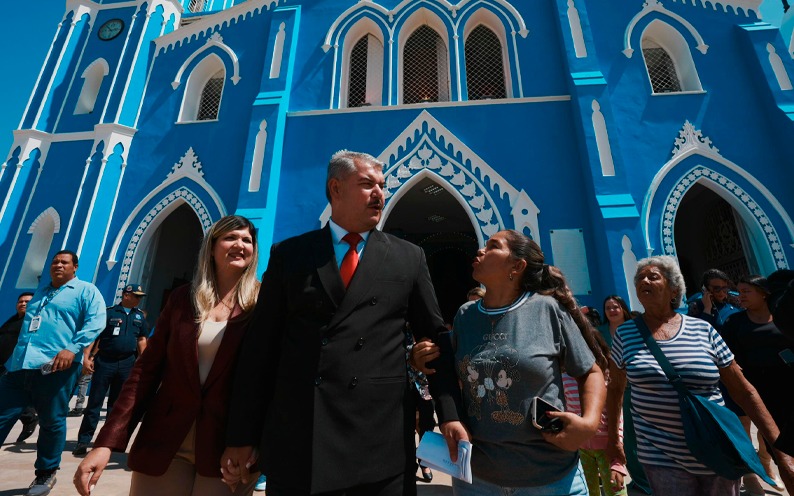 Luego de los actos protocolares, el gobernador Caldera entregó los trabajos de recuperación de la Iglesia Santa Bárbara, la cual fue afectada por el enjambre sísmico del 24 de septiembre de 2025.